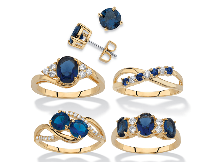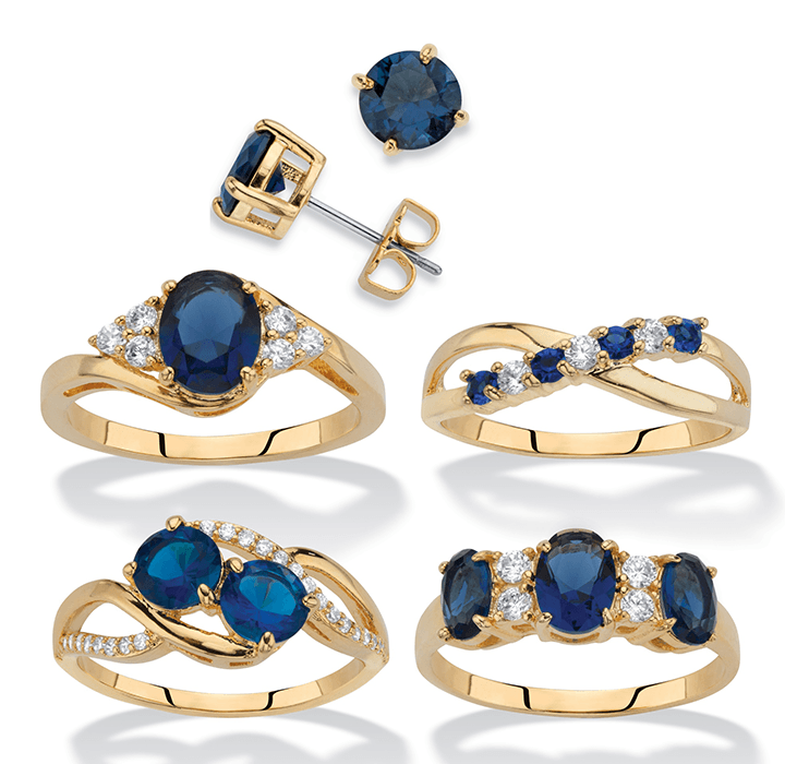 • 14K Gold Plated Simulated Blue Sapphire and CZ Jewelry Set