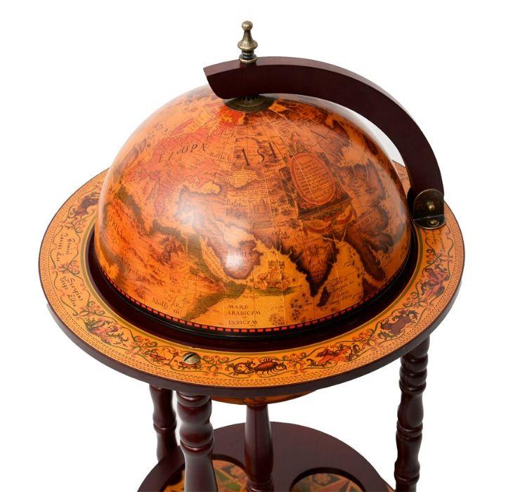 This 16th Century Replica Italian Wood Globe 36'' Wine Bar is great for storing wine bottles and glasses. Its elegant, unique design is perfect for the office, the study, or the den. It will serve as a conversation piece for years to come!