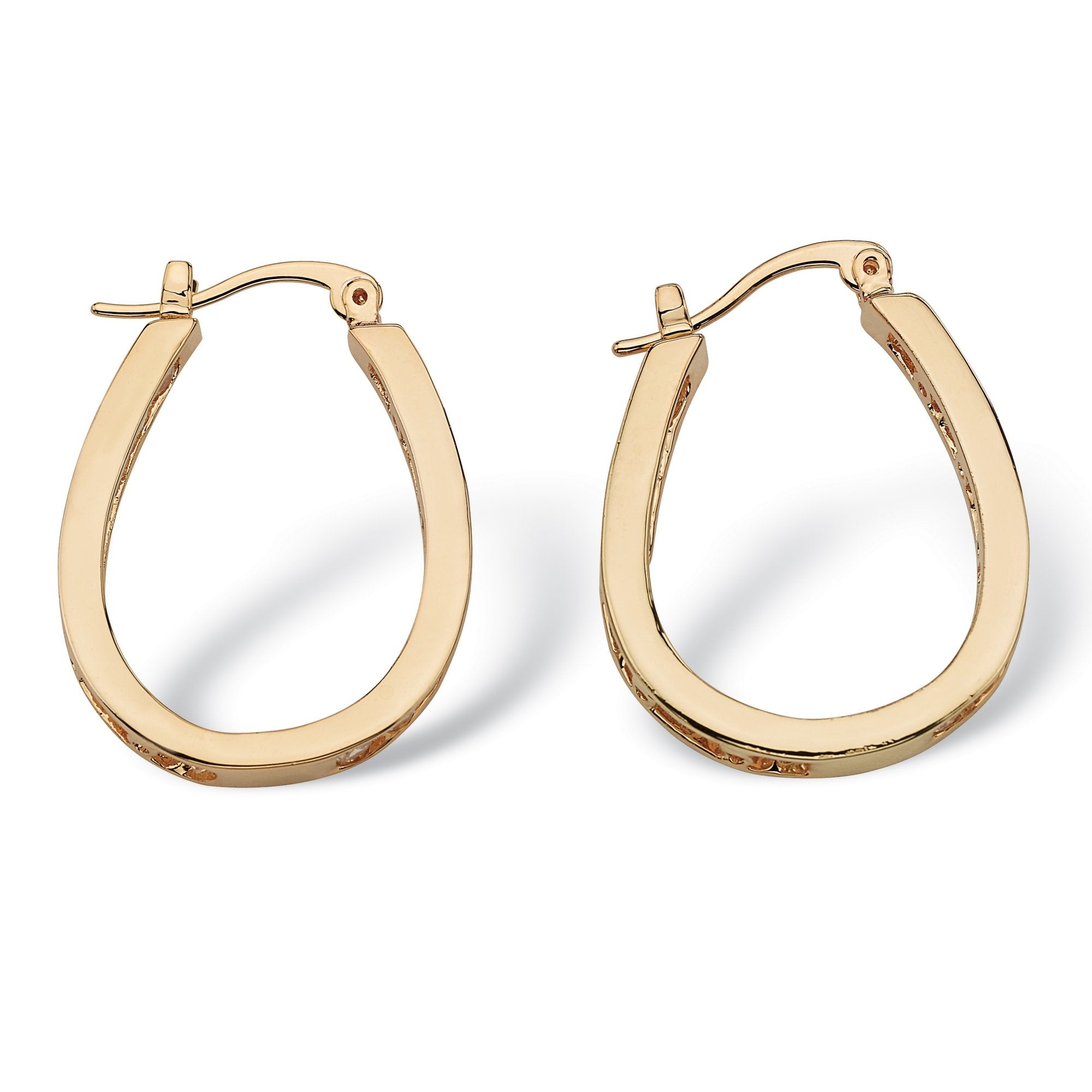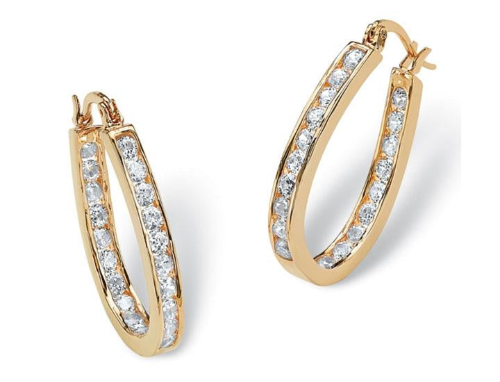 Elegance never goes out of style, and neither will your contemporary inside-out hoop earrings sparkling with 2.52 carats They have T.W. of channel-set cubic zirconia and are yellow gold tone.