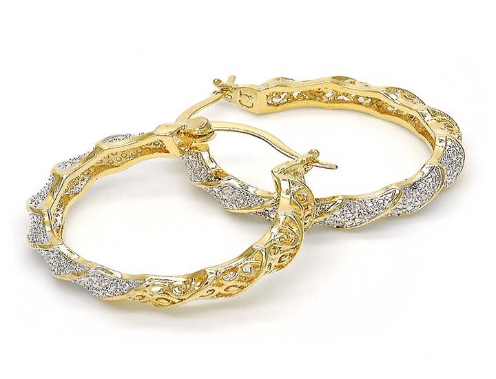 2-Tone Gold plated Hoop Earrings With Diamond Accent