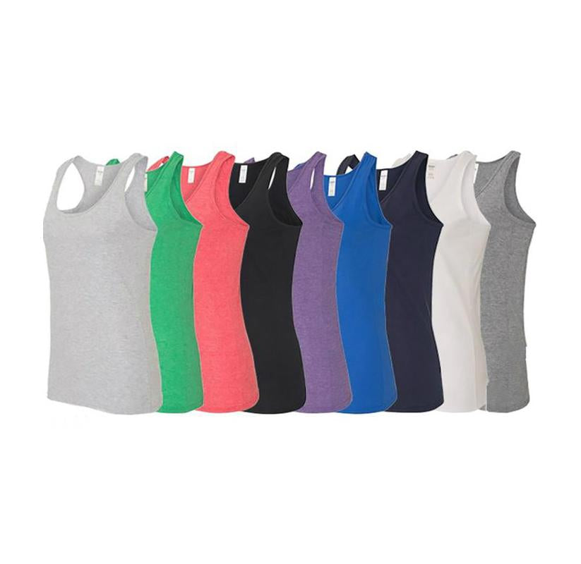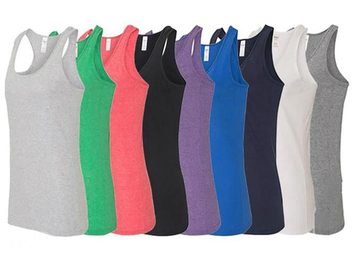 These racerback tank tops are made with a high-stitch density for a smoother and softer style. They have banded neck and arm holes, a tearaway label, and a double-needle stitched bottom hem, ensuring high quality production. They are made with a semi-fitted contoured silhouette with side seams to achieve the ultimate comfort level of apparel.