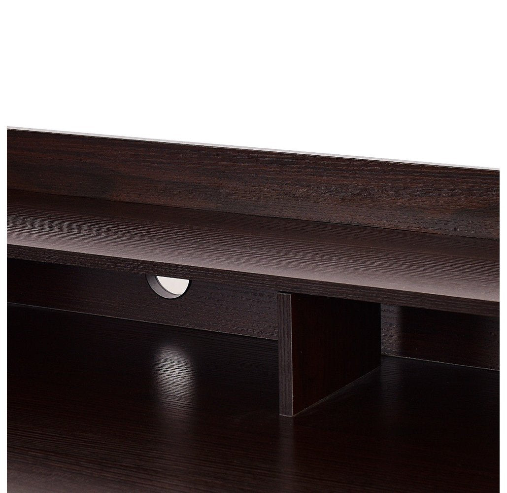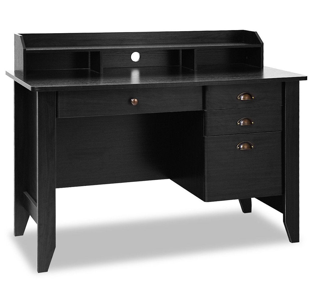 Your 4-Drawer Writing Desk with Upper Shelf is perfect for your home or office. The engineering MDF construction provides years of sturdy and reliable use. It features a smooth slide-out long drawer and three spacious side drawers, offering large storage space for your daily supplies. A desktop shelf provides more storage space for books, photo frame or cups.