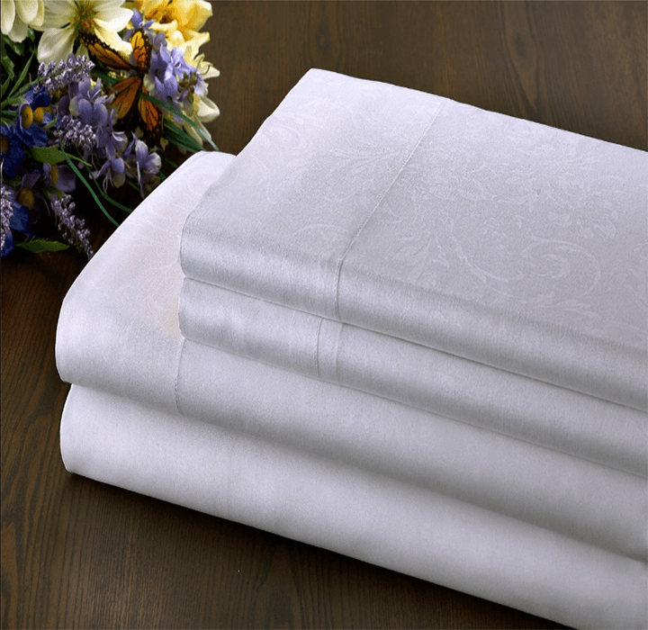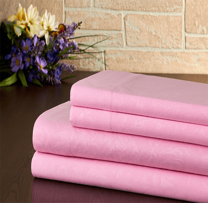 Introducing The Bibb Home 4-piece floral embossed sheet set, designed with your comfort in mind. Made of fine imported double-brushed microfiber yarns creating a new standard in softness and breathability, this 4-piece sheet set will make it incredibly hard to get out of bed in the morning. Our premium yarns are two times more durable than cotton, completely wrinkle free, and perfect for all seasons. This set is available in a variety of color options.