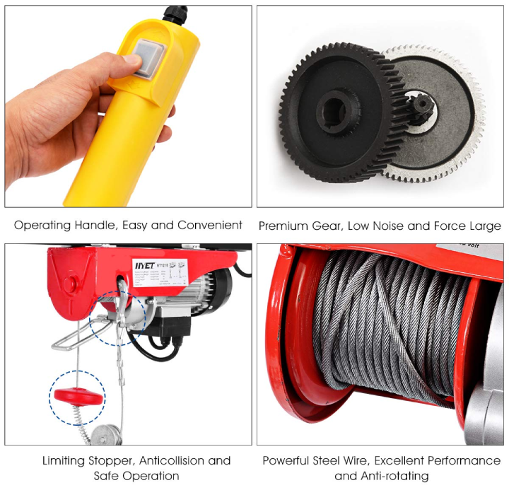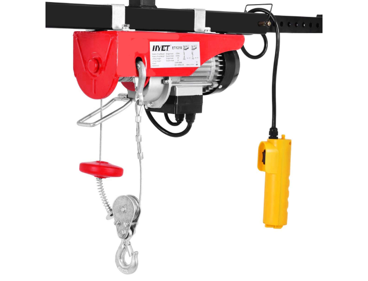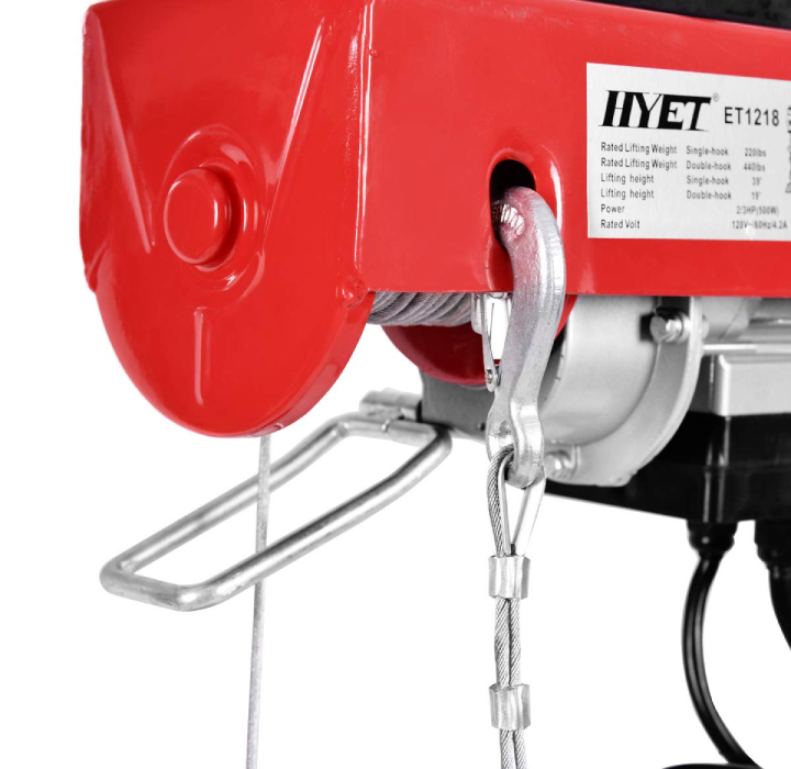 This is our 440-pound Mini Electric Wire Hoist which is perfect for general maintenance lifting and engine repair. Featuring a durable braided, anti-twist, high carbon steel cable, this mini electric wire hoist is perfect for any shop or automotive garage and loading heavy equipment or removing small engines. Rugged steel shell and mounting hanging clamp brackets, with reliable hardware, makes our mini electric wire host strong and durable enough to withstand heavy use. ETL Approved grade, features good heat dissipation ability. It provides strong power with relative low electricity consumption.With easy operate remote control panel, fully automatic hoist, requires no hand cranking. Item features automatic brake function with build-in safety braking mechanism and thermal protection device to ensure safety.