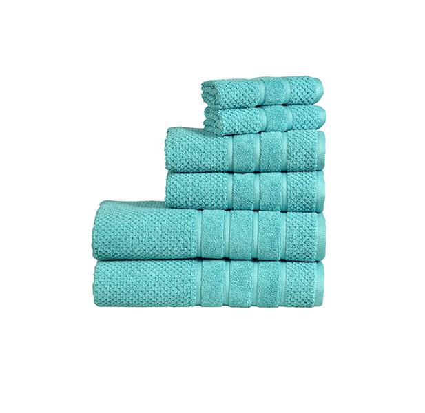 Indulge yourself in spa like luxury with this luxurious 6-piece towel set by Bibb Home. The set is made of 100% cotton known for its softness, absorbency, and durability. These towels make an ideal complement to any bathroom whether you use it to pamper yourself or reserve it for special guests. The medium-density 650GSM towel will soak up water fast for noticeable absorbency, and dry quickly for a fresh feeling with each use. Cotton loops give you a more luxurious, spa-like experience.
