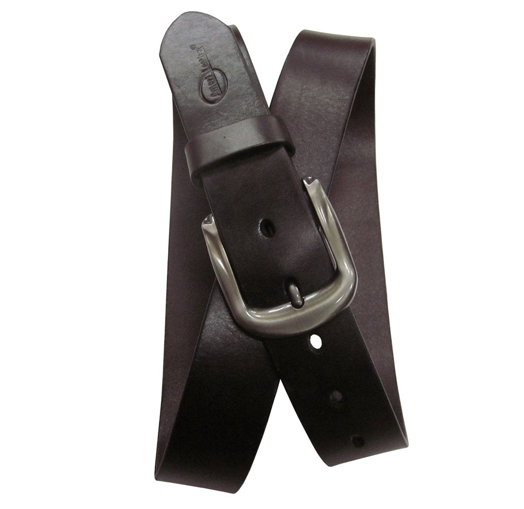 Complete your ensemble with this modern genuine leather belt by Amerileather. This classic men's dark brown belt is completed by a silver-tone metal buckle and logo accent, perfectly styled with a pair of denim jeans. This classic men's belt is made with full grain cowhide leather and with a single-prong buckle closure.