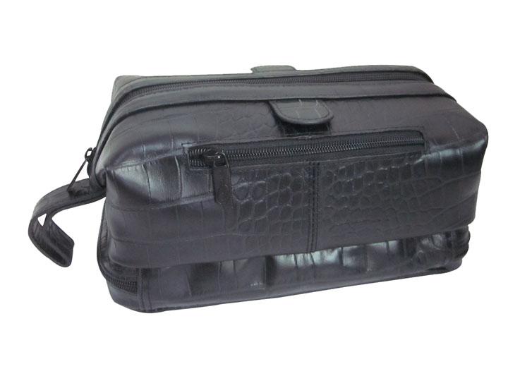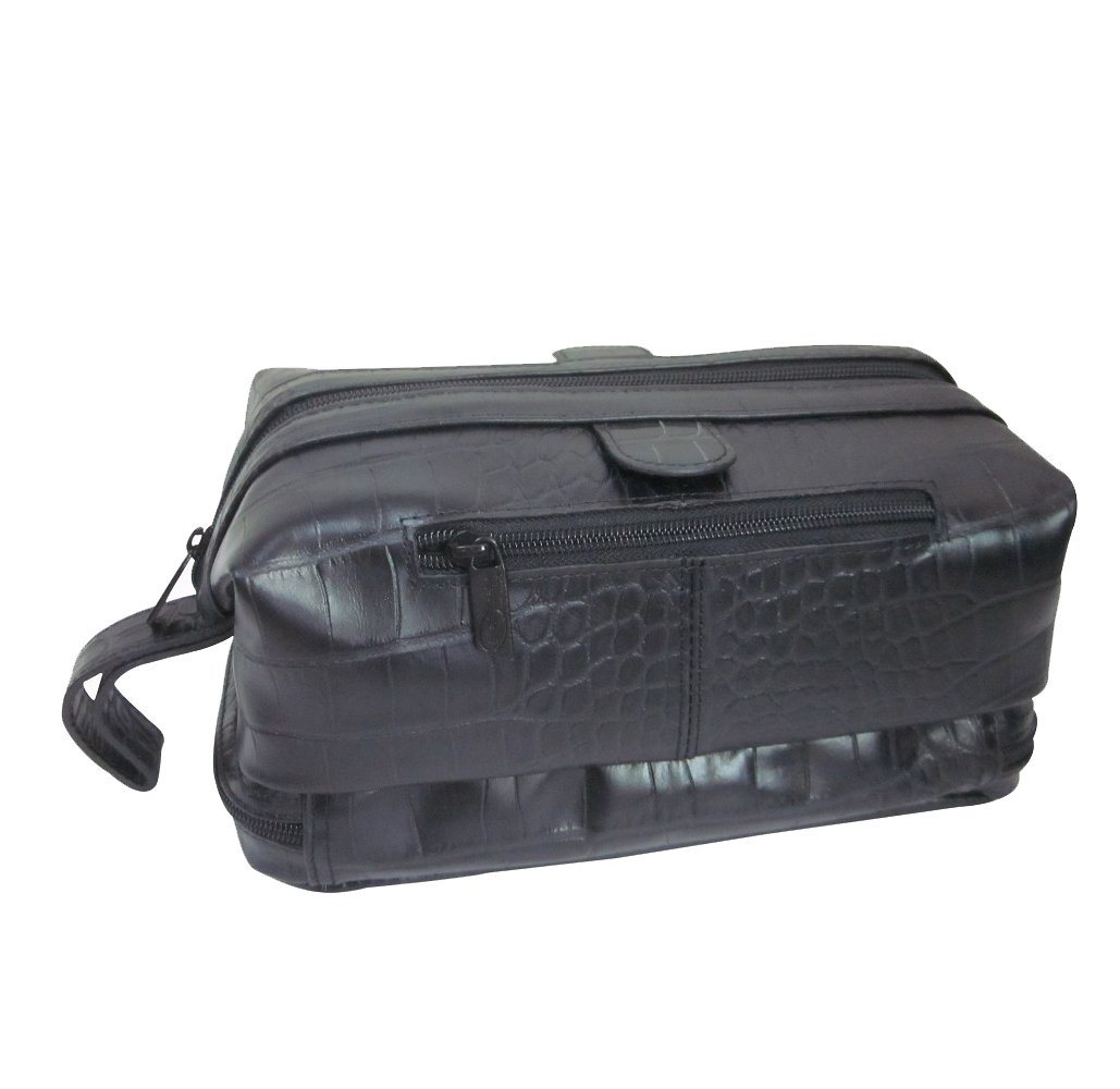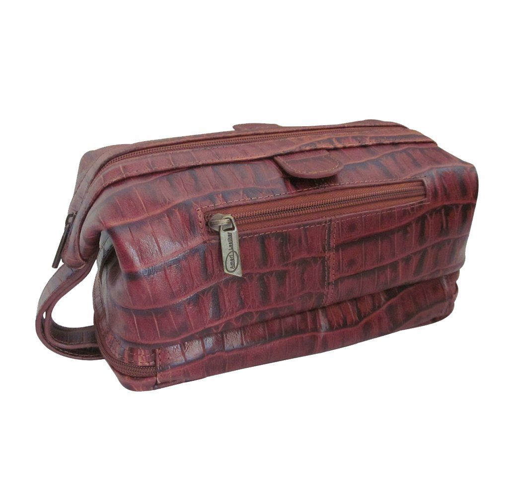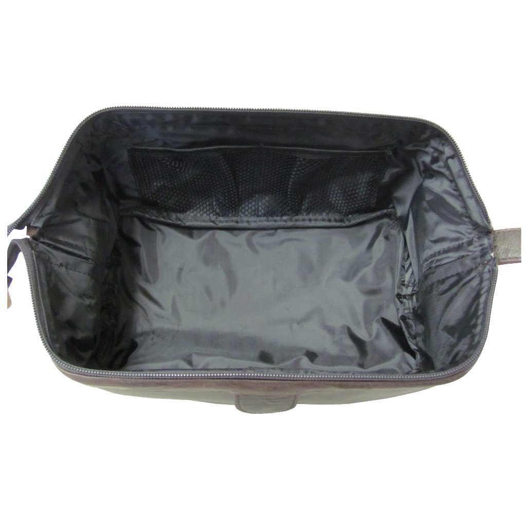 Luxurious interpretation of the classic toiletry bag, this convenient case sports a quality leather exterior and convenient waterproof lining. Its easy-access zippered bottom compartment is the ideal place to store your shaving cream, hairspray, and other essential toiletries.