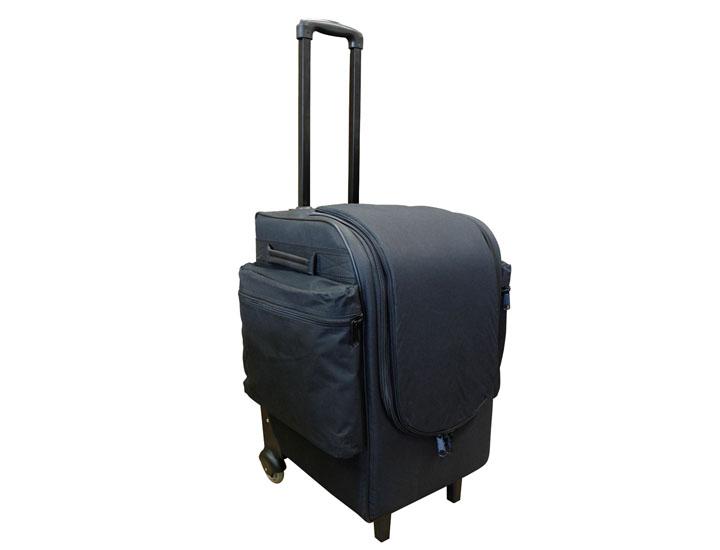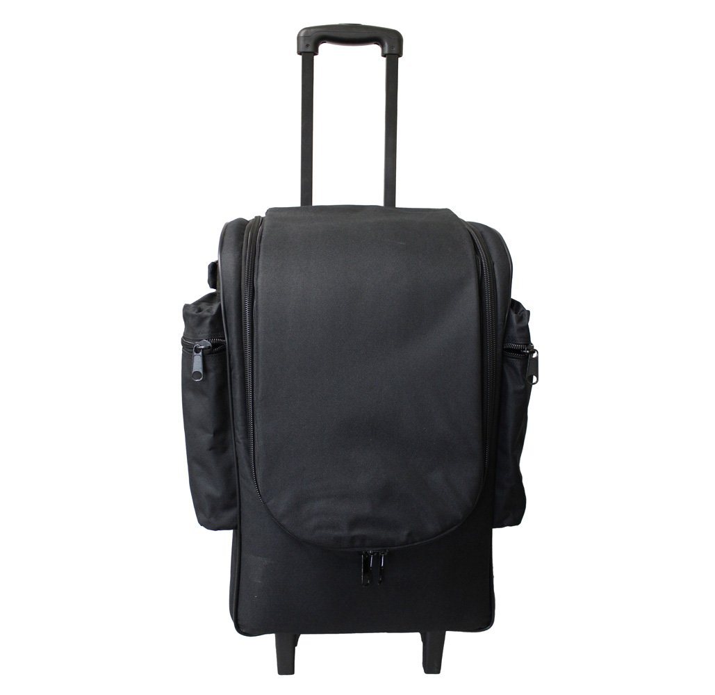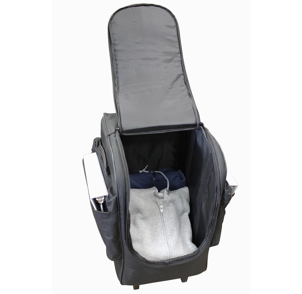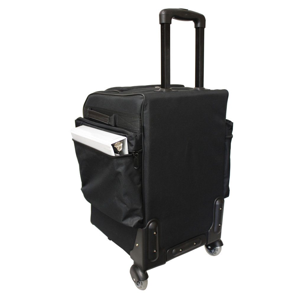 - Heavily insulated wheeled bag with large saddle-bag pockets on each side afford room for binders, shelf-talkers, sell sheets zippered pockets