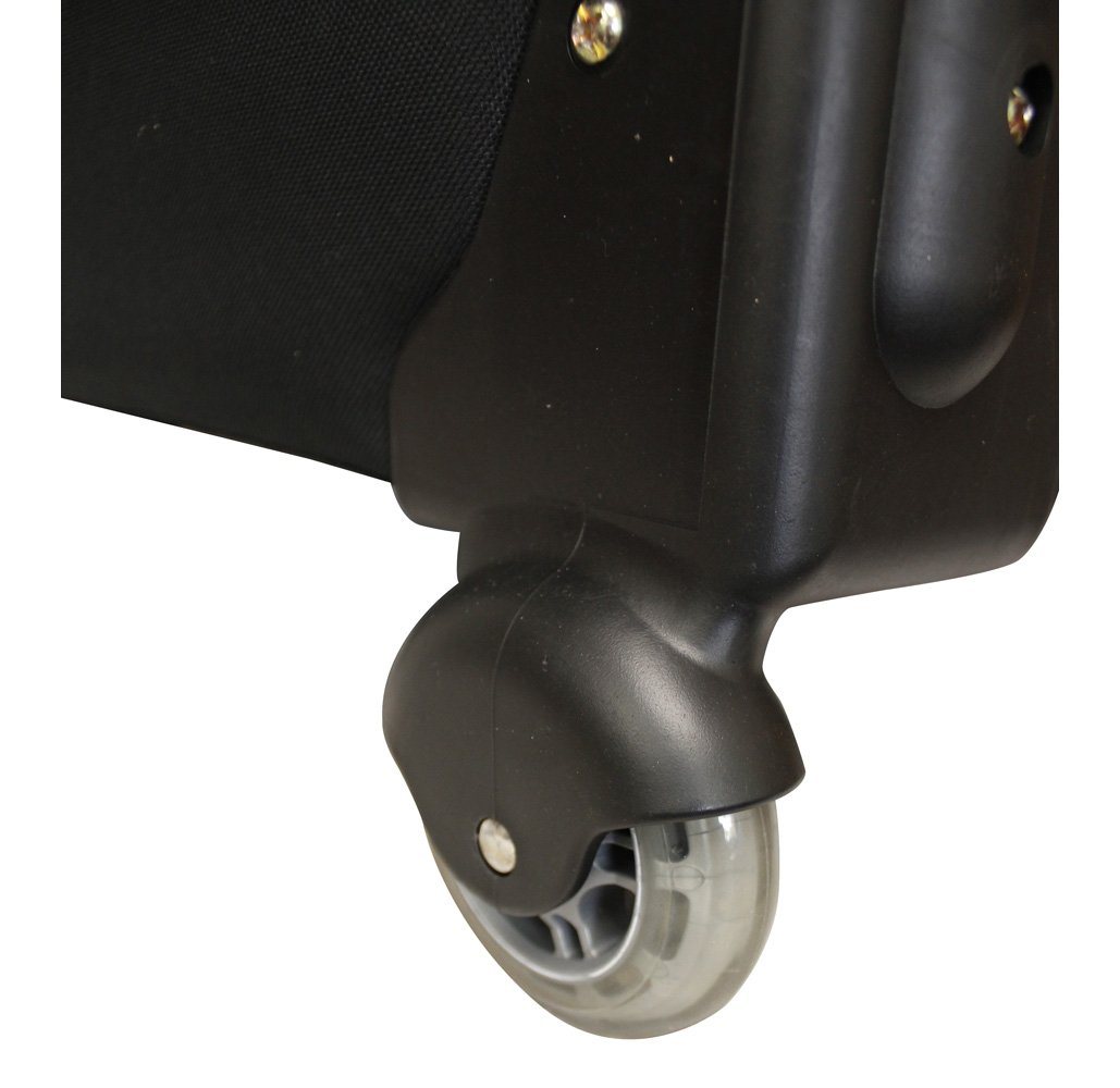 - High quality PU wheels supporting heavy duty frame and telescoping handle assembly