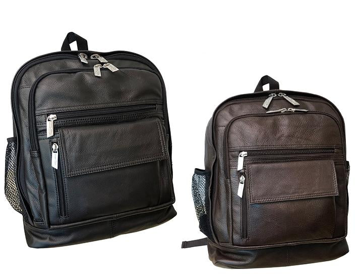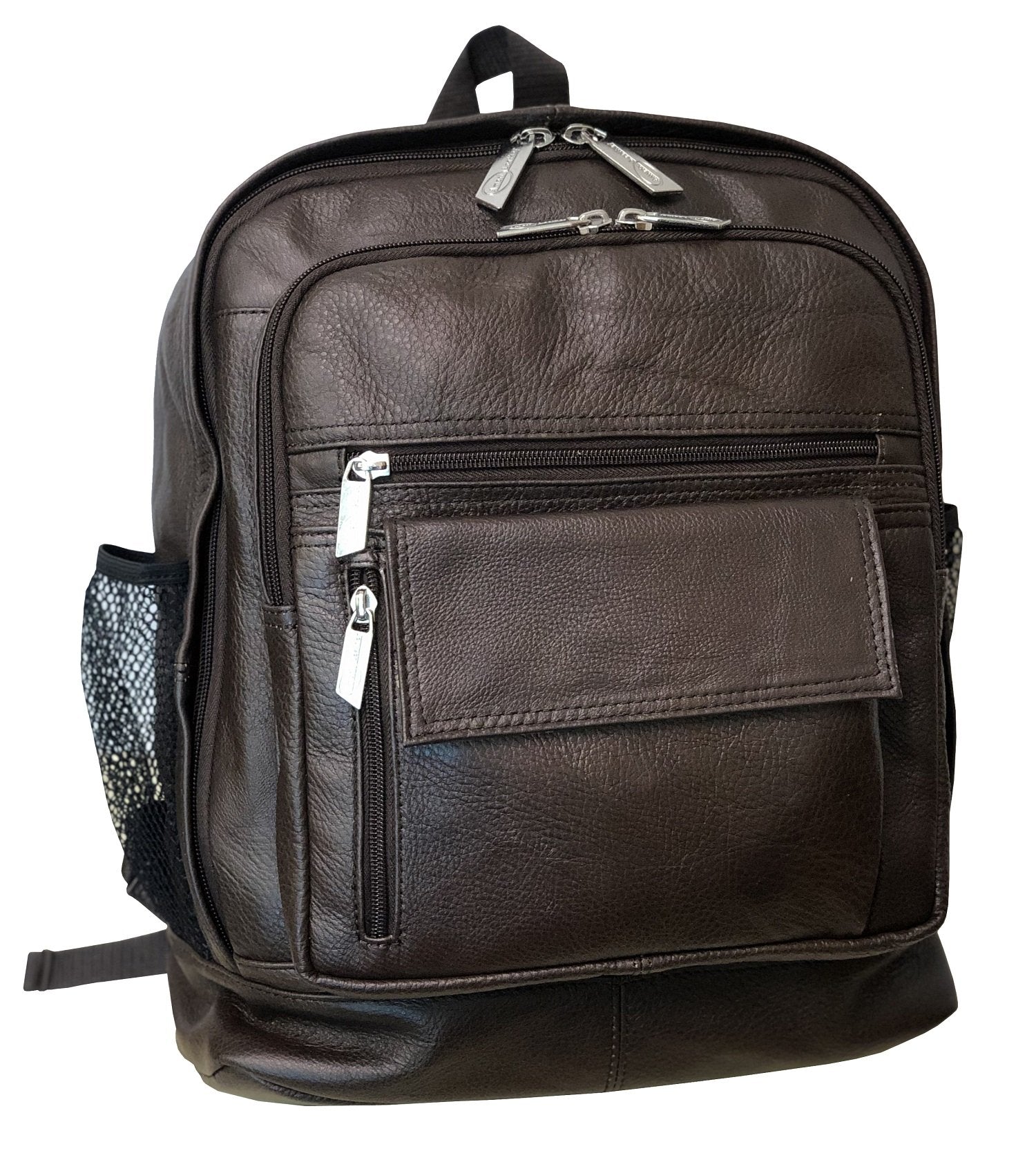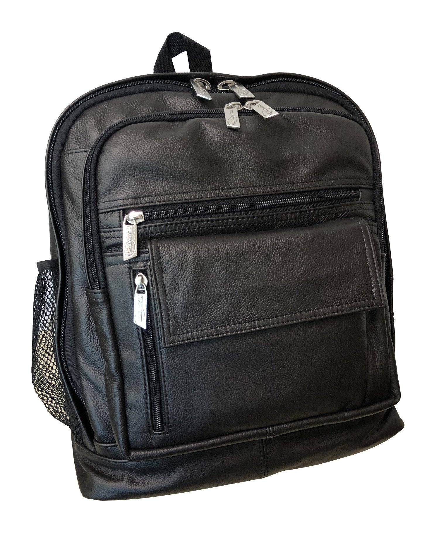 This genuine top-grain leather backpack offers great versatility and strength. Three zipper compartments, a side zipper panel and a front pocket serves as effective and expansive organizational space.