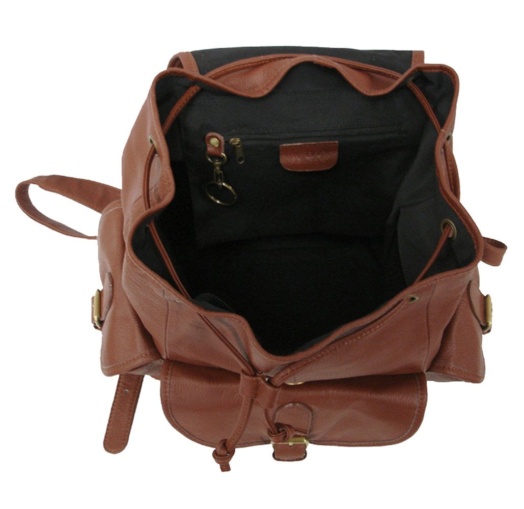 Your sturdy backpack can help you maneuver through any urban jungle. It is lightweight but roomy, allowing you to take with you whatever you want without being bulky. The backpack is made with top grain leather and its large pockets are sure to meet your carrying needs and the main compartment is further secured with drawstring. Your pack features two sides and one front pocket with magnetic buckle snap closure. This backpack can accompany you on any outing - whether through the streets of a big city or through the Amazon.