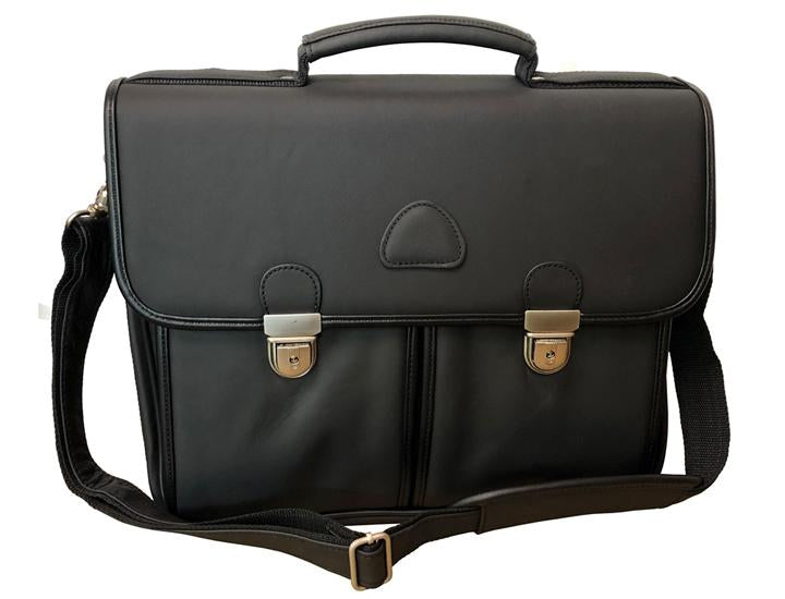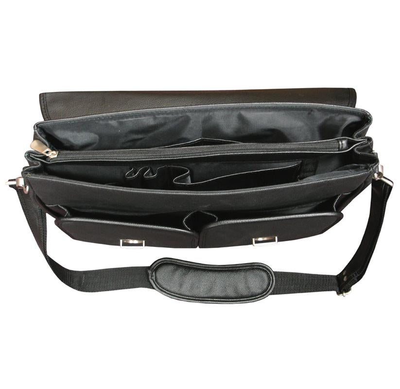 You'll look ready to conduct business everywhere you go with your personal and professional items stored inside this sophisticated briefcase from Amerileather. The Amerileather Brief is made from top grain cowhide leather coupled with nickel hardware and a flap top design with double thumb latch closures. Your briefcase has two roomy main compartments to hold files, documents, and folders, a center zippered pocket for valuables, inner mesh pockets for accessories, and two large front gusseted pockets for frequently used items. An organizer compartment includes pockets for your cell phone, pens, keys, chargers, and other personal items that you need to keep within easy reach.
