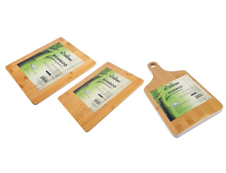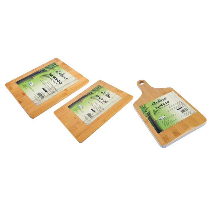 This awesome 3-piece Cutting Board set comes with 3 different sized cutting boards made of Natural and Eco-Friendly Bamboo. Bamboo is a renewable resource that grows back quickly— preserving hard wood forests while providing a strong, dense cutting surface. Bamboo is gentle on knives to preserve their sharpness for continued quality cutting. It won’t dull your expensive cutlery. Bamboo is thick and durable for all of your chopping and dicing tasks. Bamboo is even more sanitary than wood cutting boards, because bamboo has natural antimicrobial properties and is 19% harder than other wood, it absorbs less liquid and has fewer cross-contamination concerns. A perfect kitchen starter set or housewarming gift, this set of 3 boards is a great essential to add to anyones home. They are easy to clean and maintain. They also resist warping and splintering. Simply hand-wash in warm water with dish detergent and allow to air-dry.
