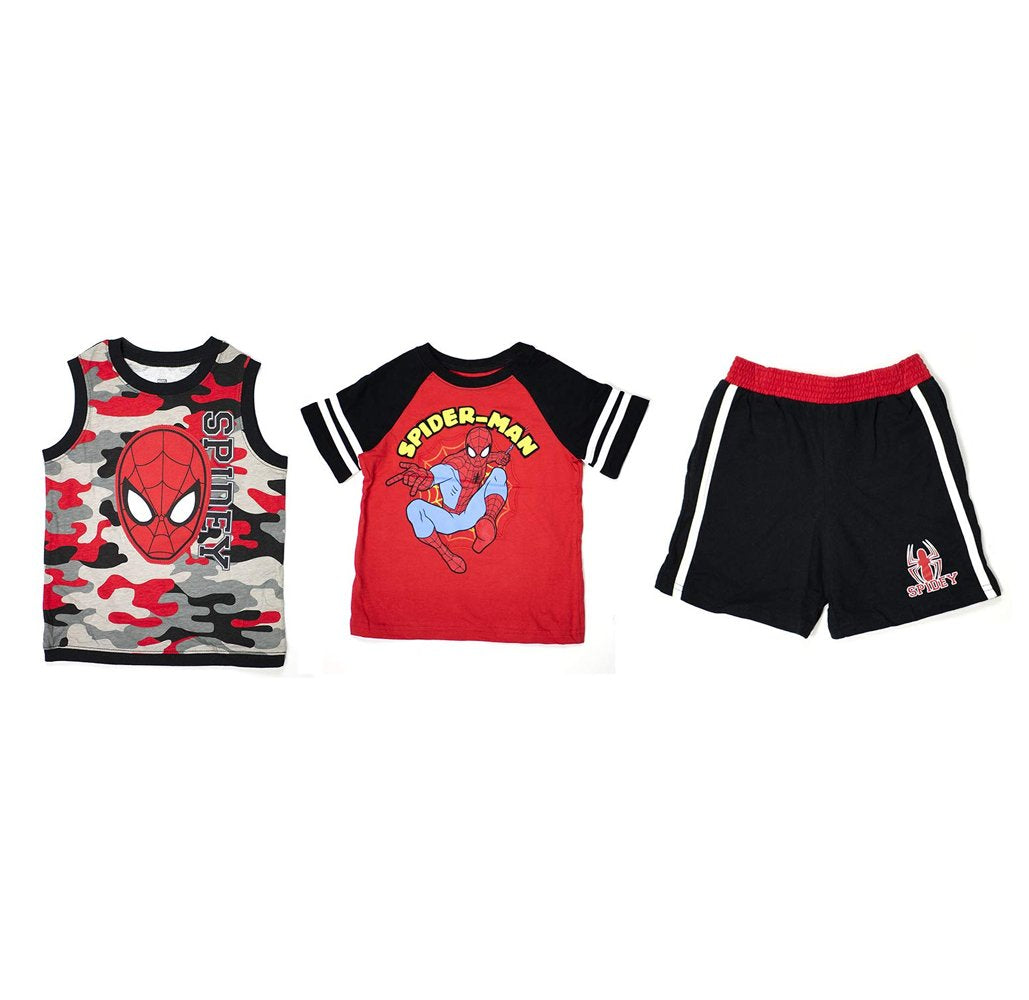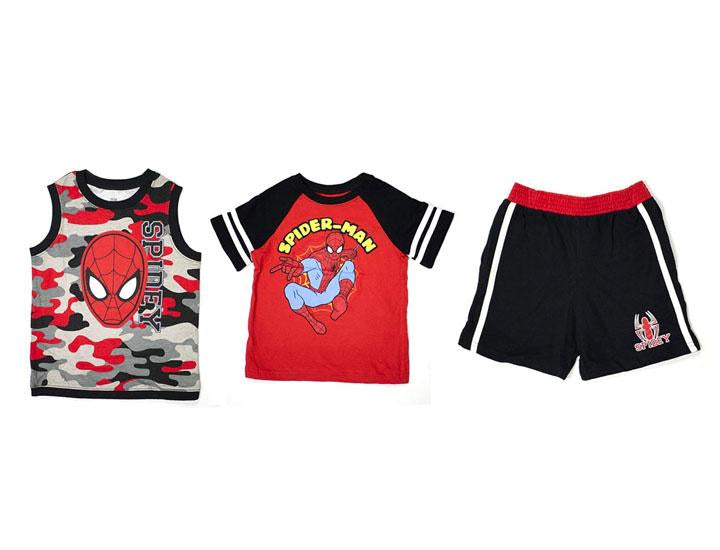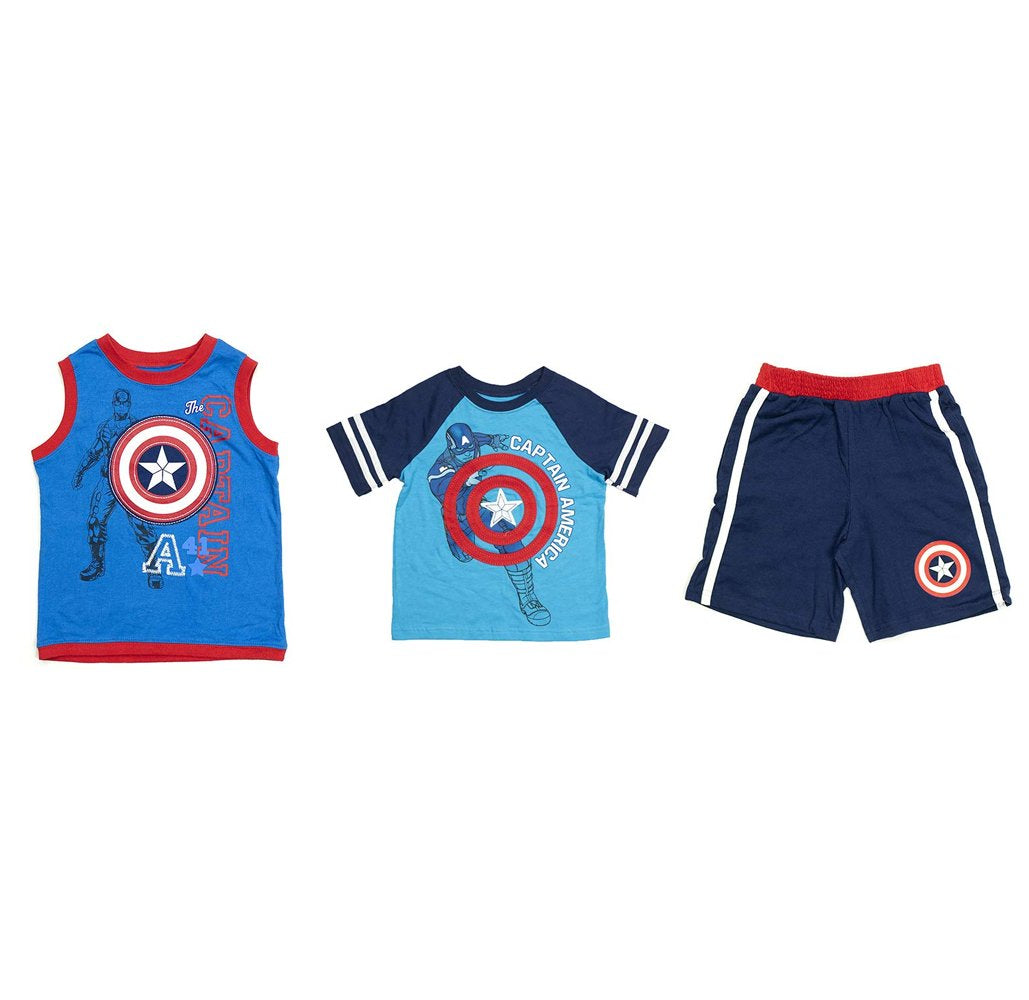 Give your superhero-in-training the mix-and-match style of these Captain America, Spider-Man, Batman, or Ninja Turtles. Your 3-piece set features a jersey t-shirt with character graphic, and rib-knit neckline with tagless interior (100% cotton), a Jersey tank top with contrast rib-knit trim, character graphic, and tagless neckline interior (100% cotton) and Jersey shorts with elastic waistband and contrast stripes at sides (100% cotton).
