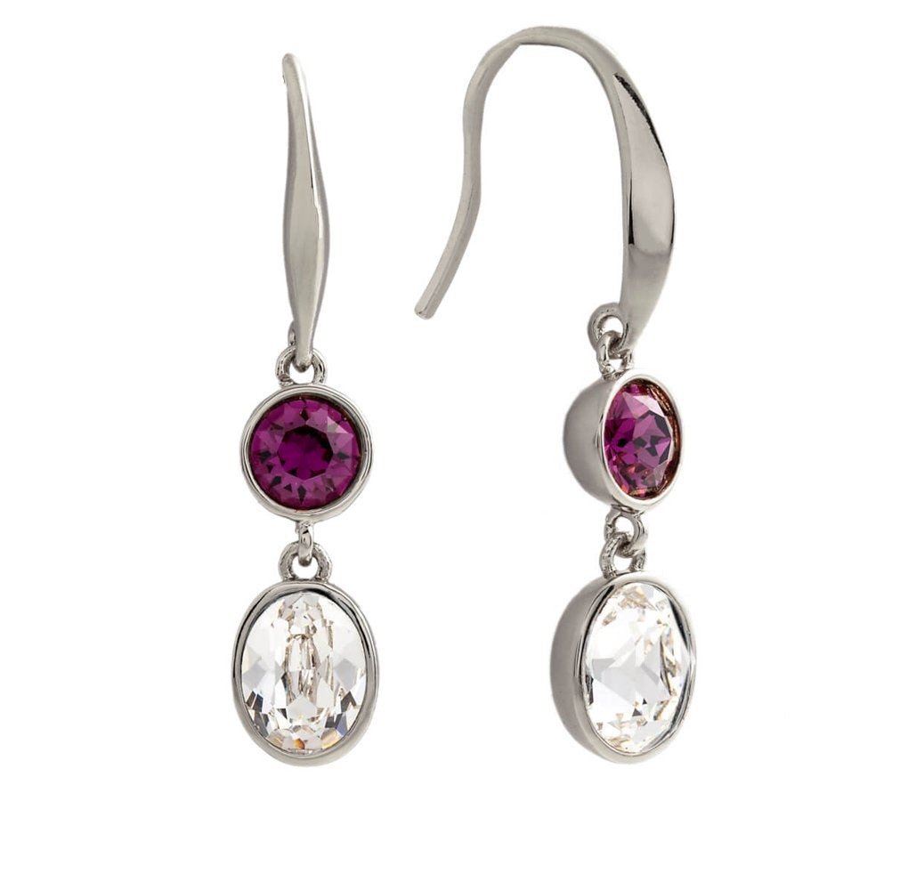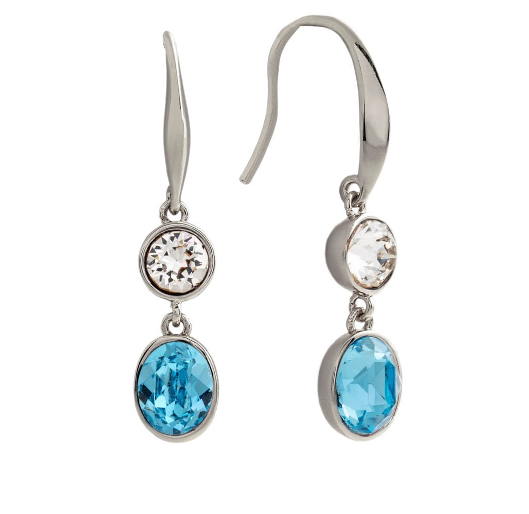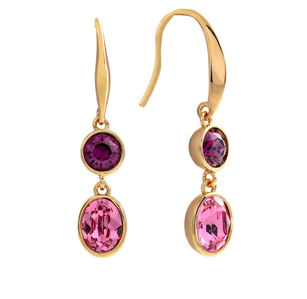 Your earrings boast a sophisticated and luxurious design. This design is a combination of vintage style and modern minimalism. Two bright bezel set Swarovski stones dangle gracefully from an 18 karat gold plated curved bar. The earrings are nickel and lead free. They are definitely a must-have in your jewelry collection. They feature a hook design for that perfect dangling. They will surely get everybody's attention.