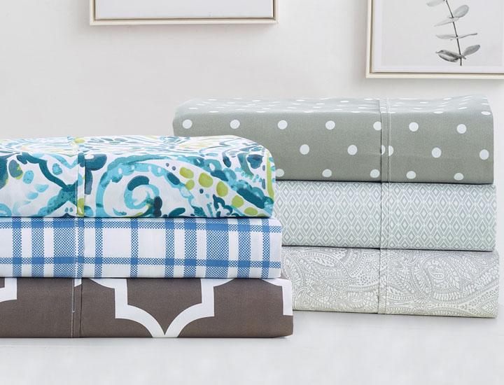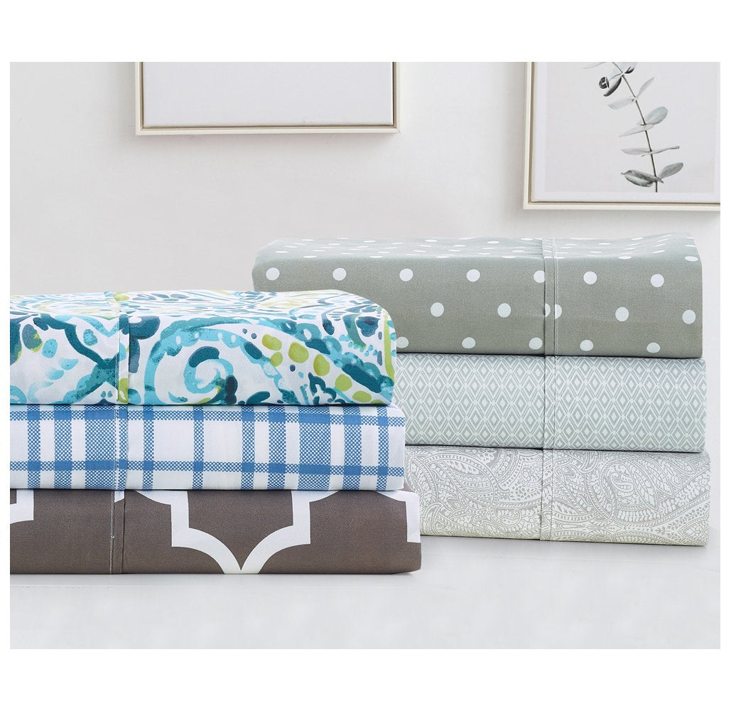 Your chic printed sheet sets by Bibb Home are warm and cozy in the winter and cool in the summer providing a good night’s sleep ensuring your mind and body are rejuvenated for the next day. The printed designs are simple yet elegant making these sheets an excellent complement to any bedroom decor. Comfortable double-brushed yarns paired with extra-deep pockets give these sheets long-lasting strength, natural resistance to shrinking and wrinkles, and a noticeably soft feel.
