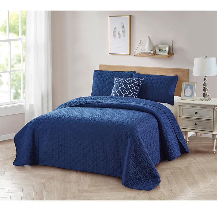 This Bibb Home 4-Piece Diamond Quilt Set is a perfect choice for homeowners with sophisticated taste in home decor. Adding an extra layer of style and freshness in your bedroom can help coordinate home decor with country, rustic, coastal or any other casual decorating style. Modern design of artistic quilts will absolutely add some tremendous dreams to your sleep. The color coordinated cushion completes the look with modern quatrefoil embroidery. Our reversible quilt set is lightweight, thus perfect for summer use or as a winter topper with blankets underneath. We utilize high strength fabric on all three layers to ensure the long-term usage which resists fade, stain and pill less than other materials like cotton.
