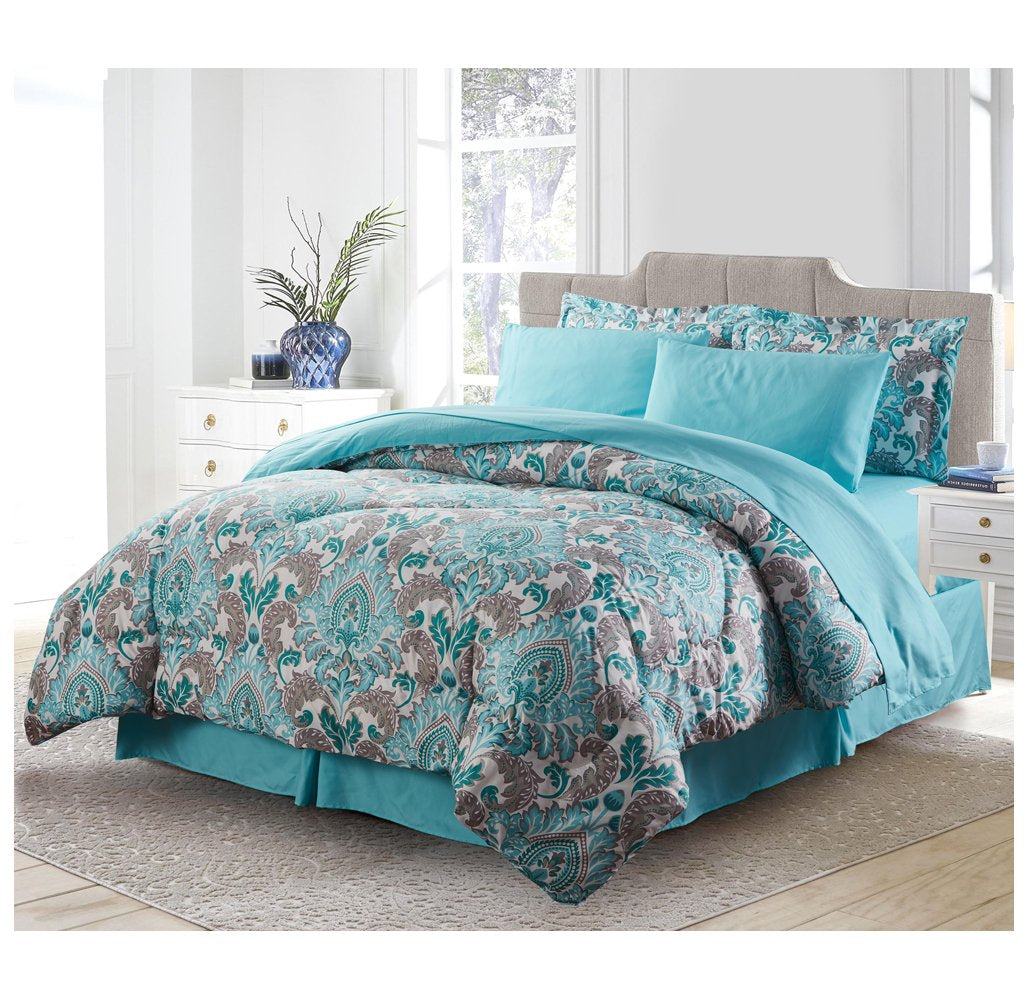• Bibb Home 8-piece Printed Down Alternative Comforter Set