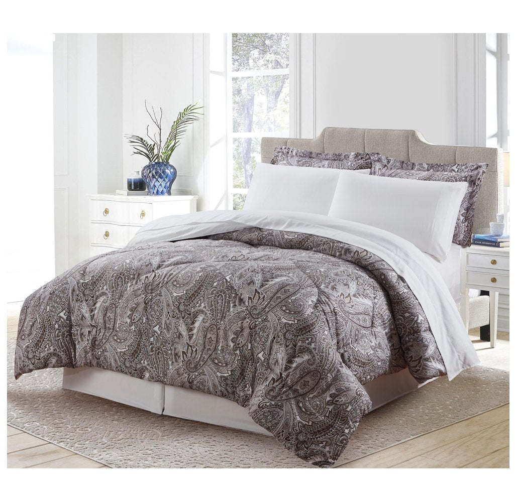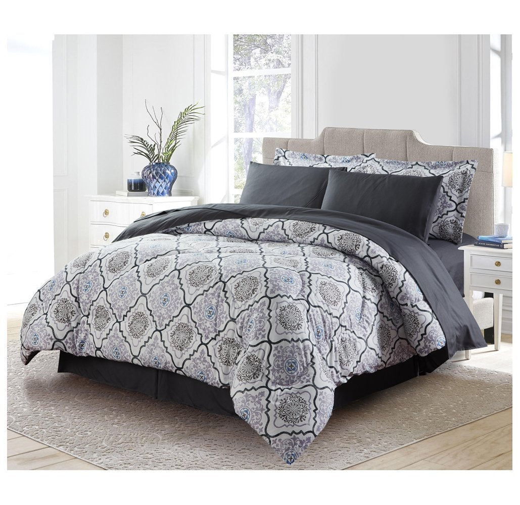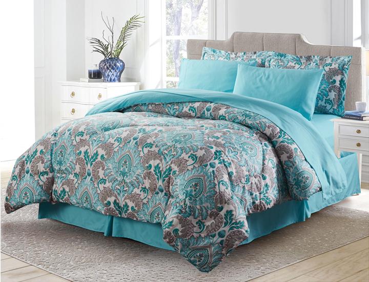 Complete the look of your bedroom. Sleep comfortably in your own luxury bed . Your set includes 1 Comforter, 1 Bed skirt, 1 Fitted Sheet, 1 Flat Sheet, 2 Shams and 2 Pillowcases for a complete bed-in-a-bag set. Made of a double-brushed ultra-soft shell with down alternative filling to provide cozy yet breathable warmth. Classic baffle-box design with double-needle stitching prevents blanket filling from shifting and bunching. Smooth, piped edging and double-needle stitching. Sewn-through construction eliminates shifting for evenly distributed warmth. Machine wash, air dry.
