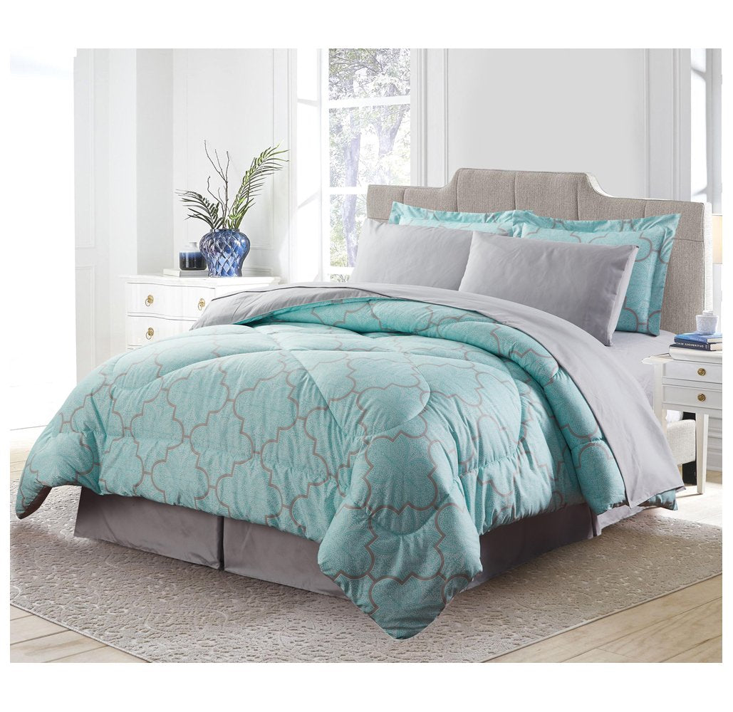 Bibb Home 8-Piece Printed Down Alternative Comforter Set