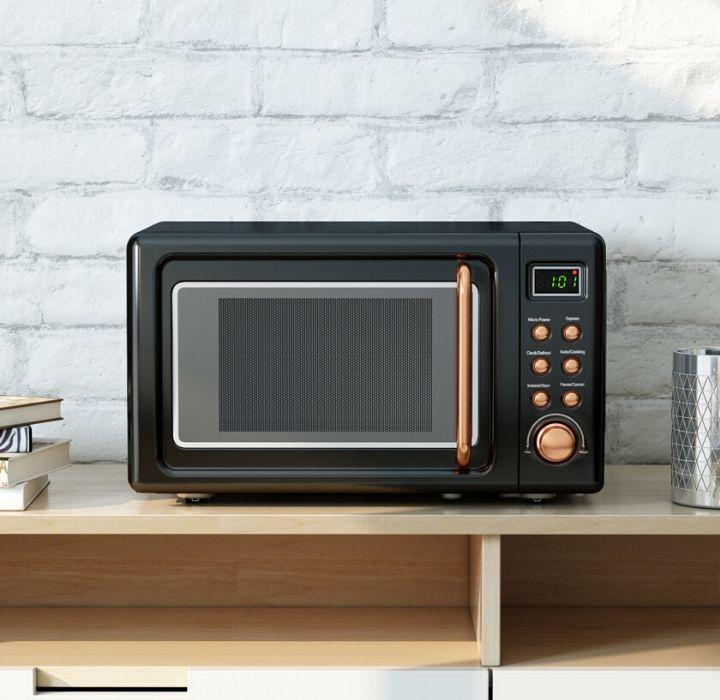 • Black & Rose Gold Retro Countertop Microwave Oven