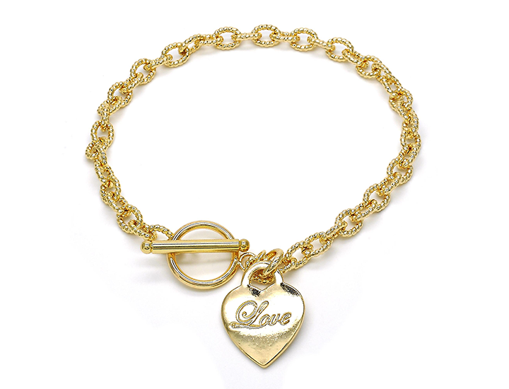 Plated in 14K gold, your chain anklet can be paired with a graphic shirt, bomber jacket, and cropped jeans. Spice up your summer look with this shimmery stackable anklet. Plated in gold over brass and featuring 6mm thick-link chain with toggle lock. Your anklet is guaranteed to retain its original gold content and color.