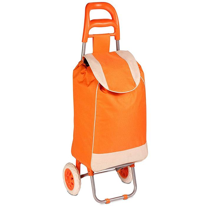 This Pull Behind Rolling Travel Hand Cart holds up to 40 pounds and is made from durable polyester material with heavy-duty wheels. Ergonomic comfort grip handle for easy transport. Quietly, smooth rolling rubber wheels will not scuff or damage floors. Quickly secure the contents of the bag with adjustable interior drawstrings. Balance bar allows the bag cart to stand upright, and also folds in for compact storage. Great for use with laundry, groceries, or recyclables!